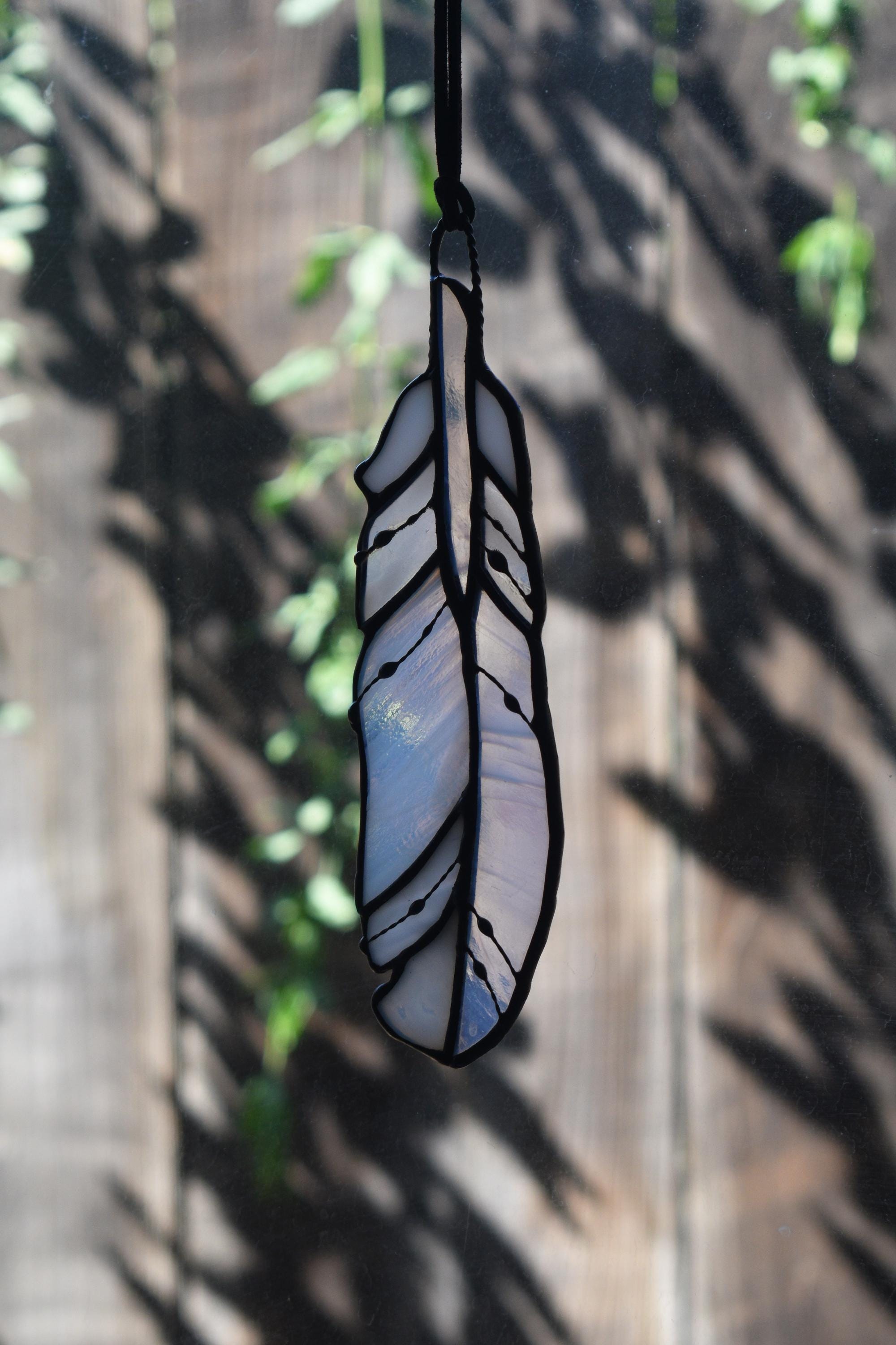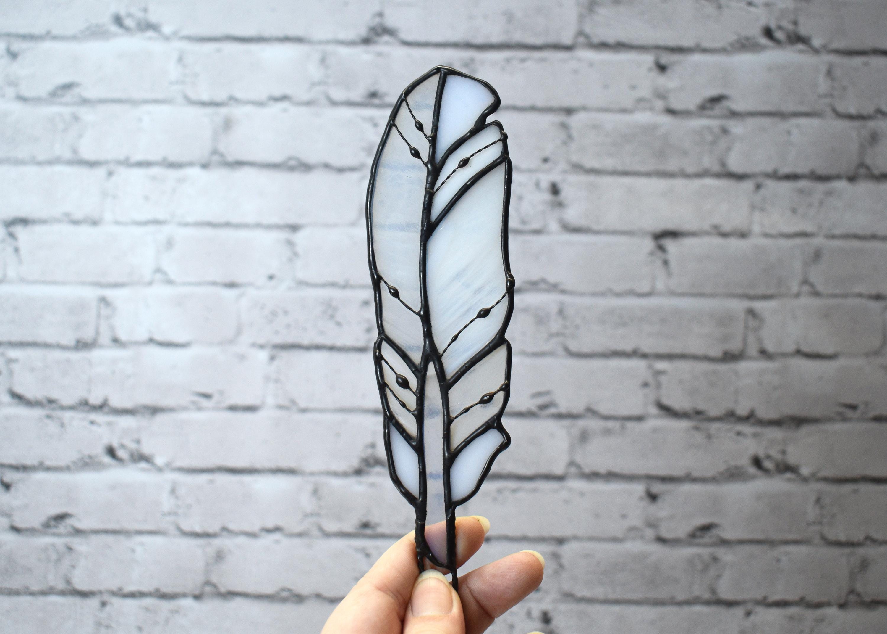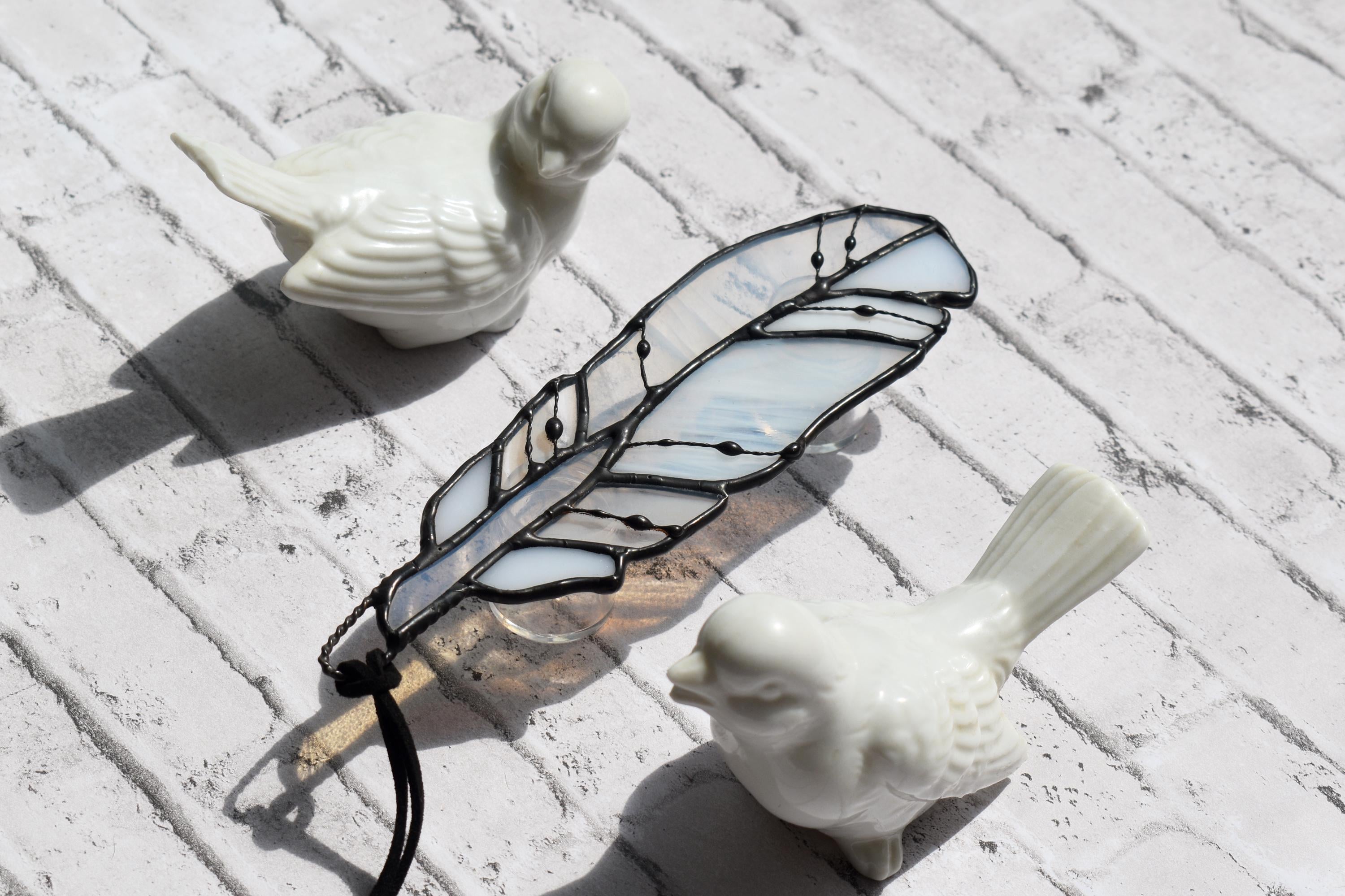 Handmade Stained Glass Feather Suncatcher Simple White Angel Feather