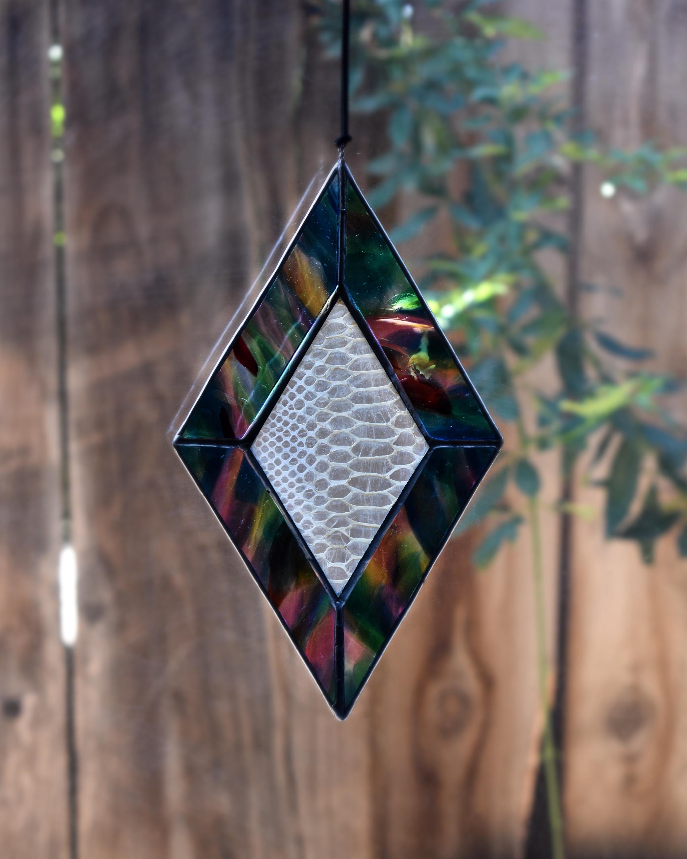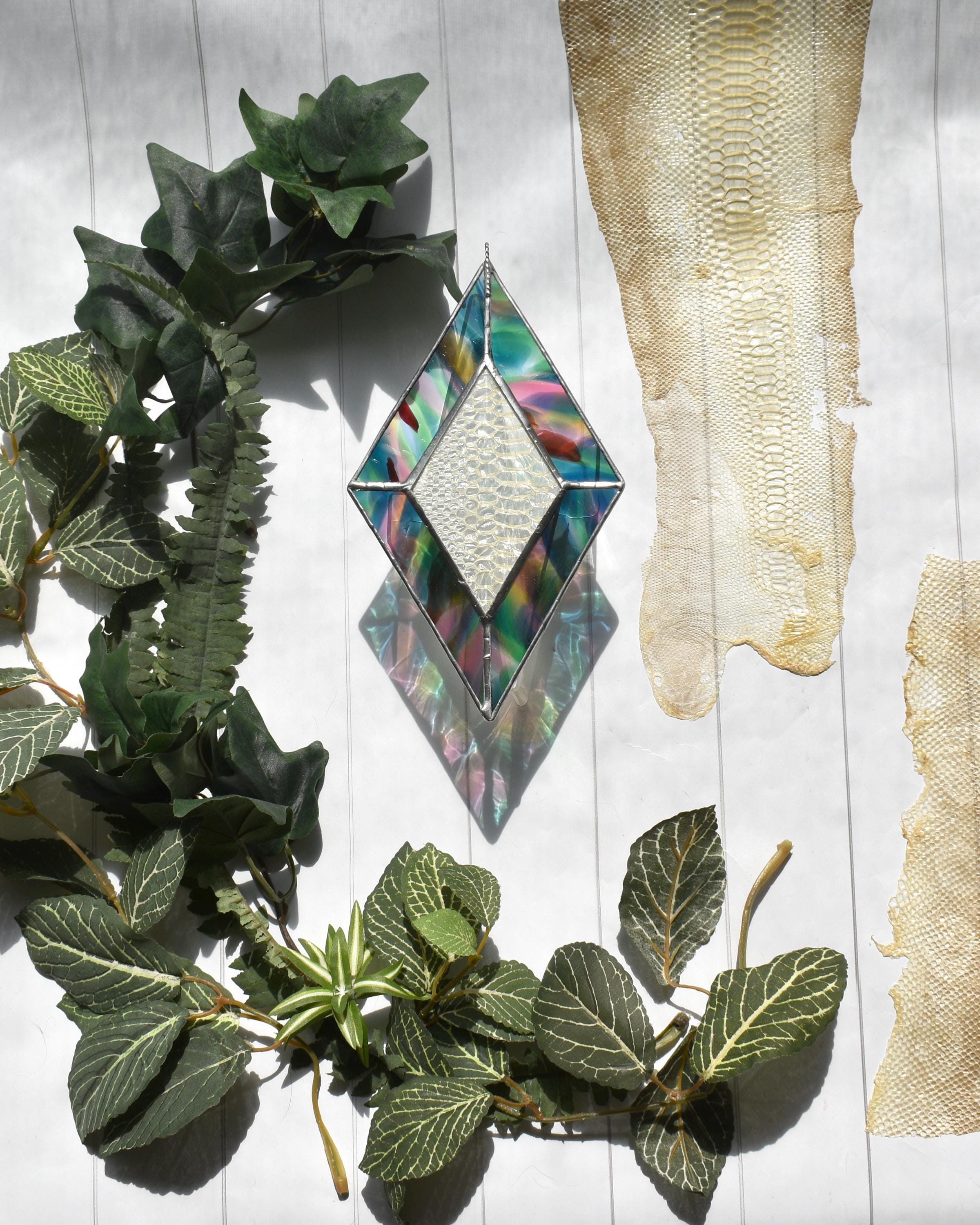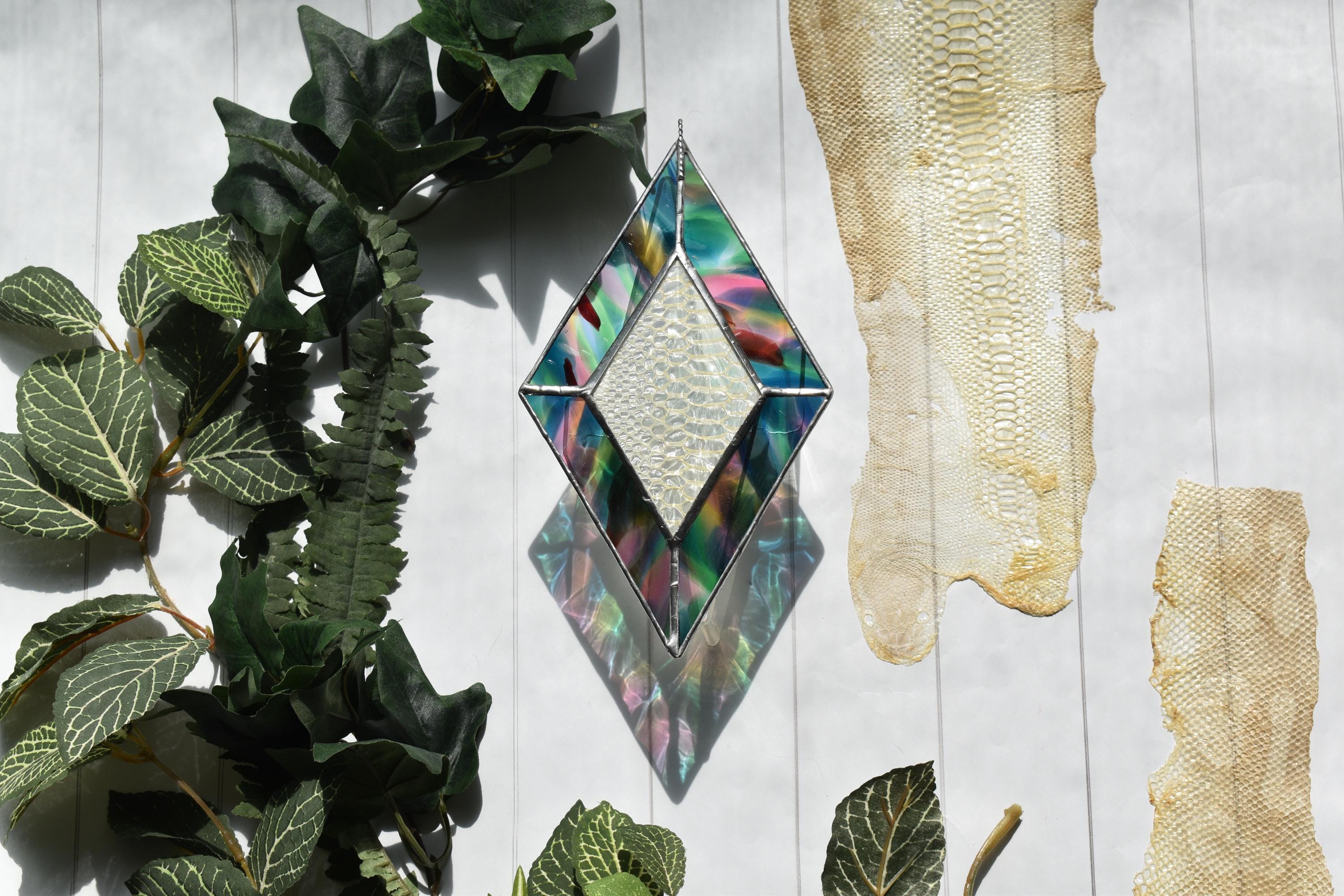 Pressed Shed Snake Skin in Diamond Bevel with Multicolor Fremont Glass Frame