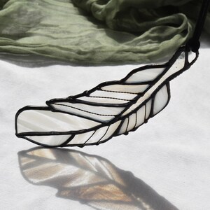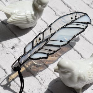 This piece measures just over 9" tall from tip to tip and 5 1/4" wide, not including the faux suede cord used for hanging.